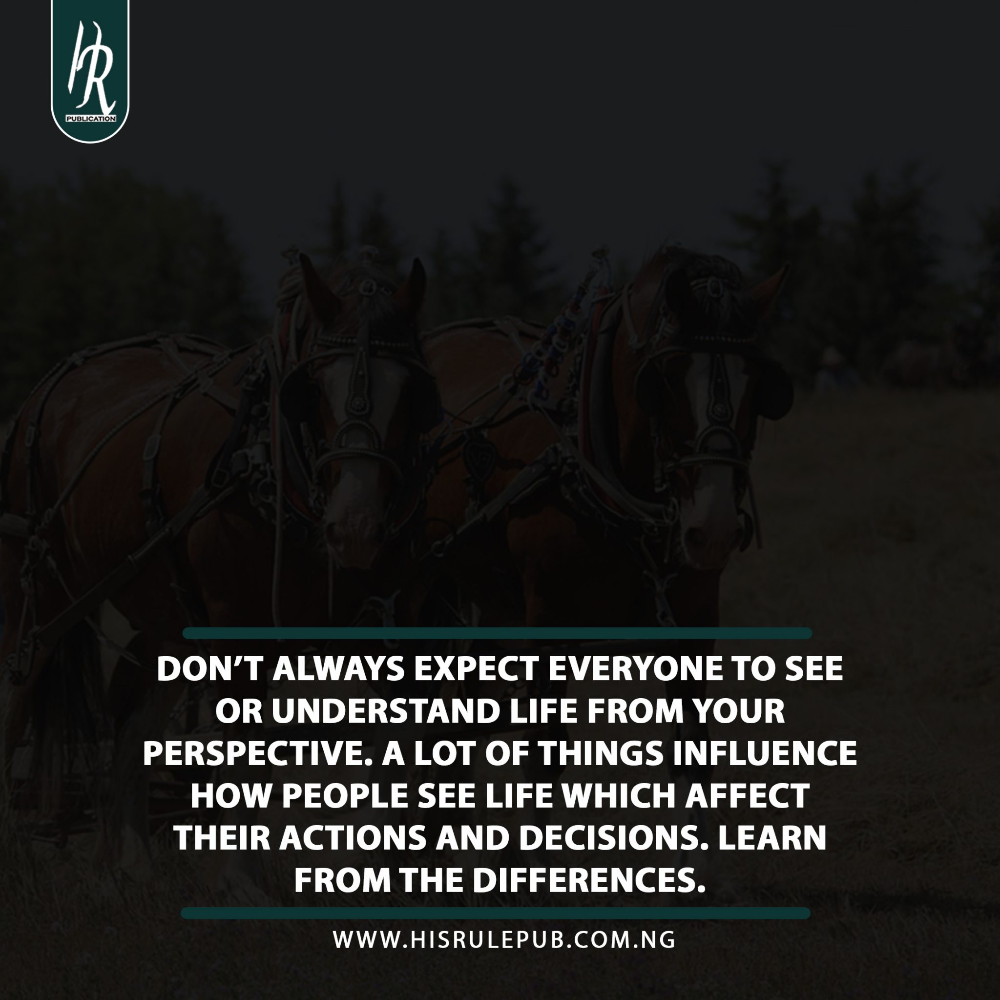 Don’t always expect everyone to see or understand life from your perspective. A lot of things influence how people see life which affect their actions and decisions. Learn from the…