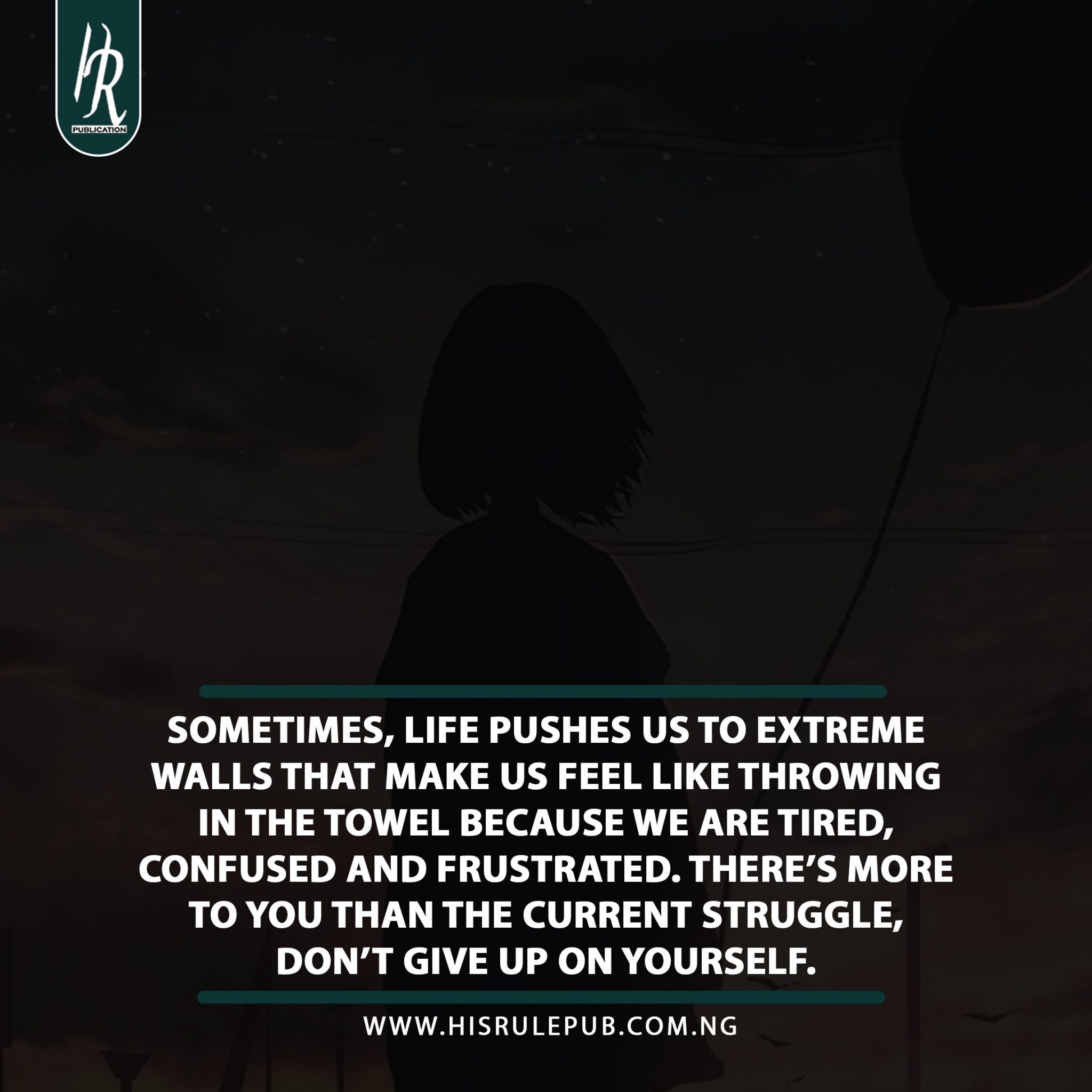 Sometimes, life pushes us to extreme walls that make us feel like throwing in the towel because we are tired, confused and frustrated. There’s more to you than the current…