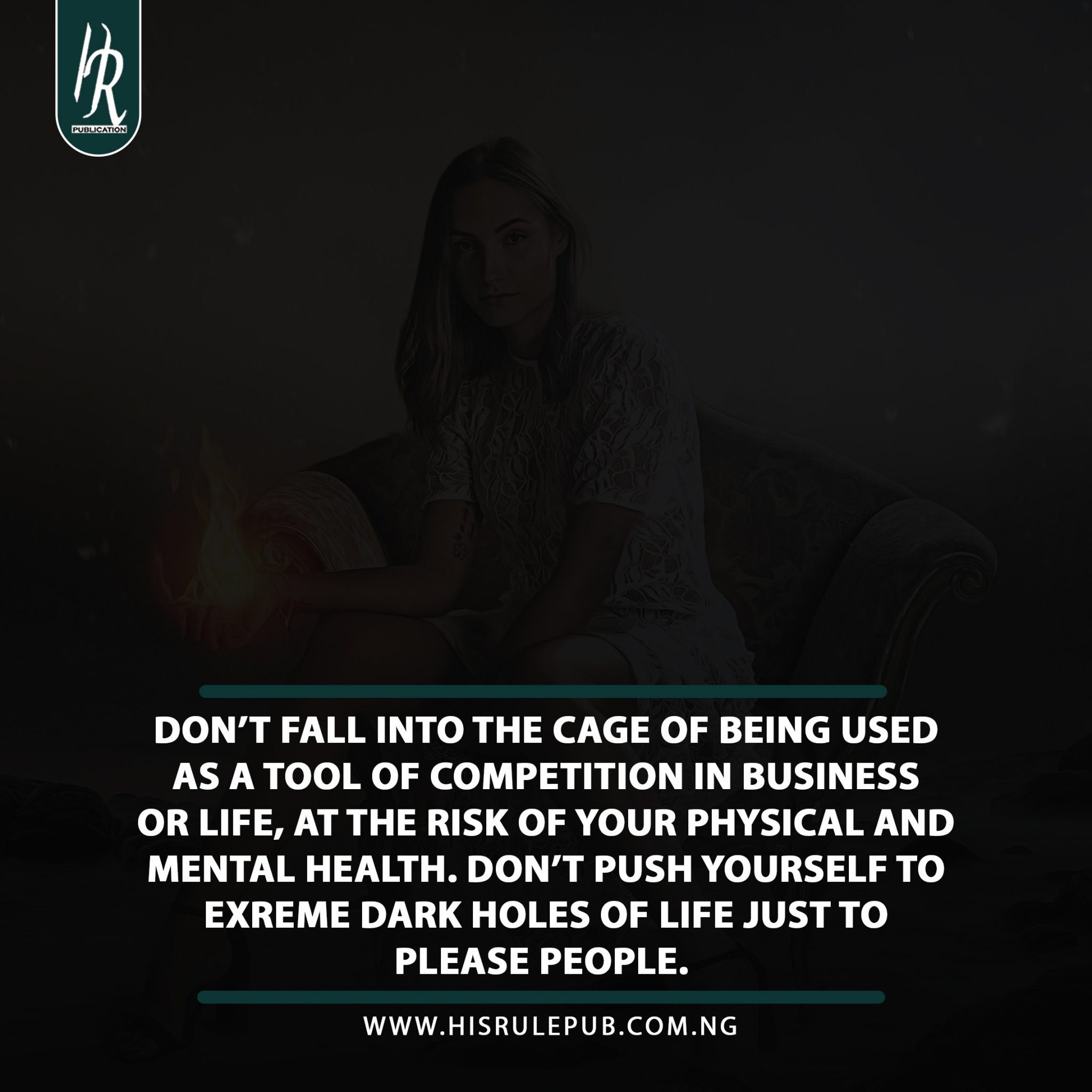 Don’t fall into the cage of being used as a tool of competition in business or life, at the risk of your physical and mental health. Don’t push yourself to…